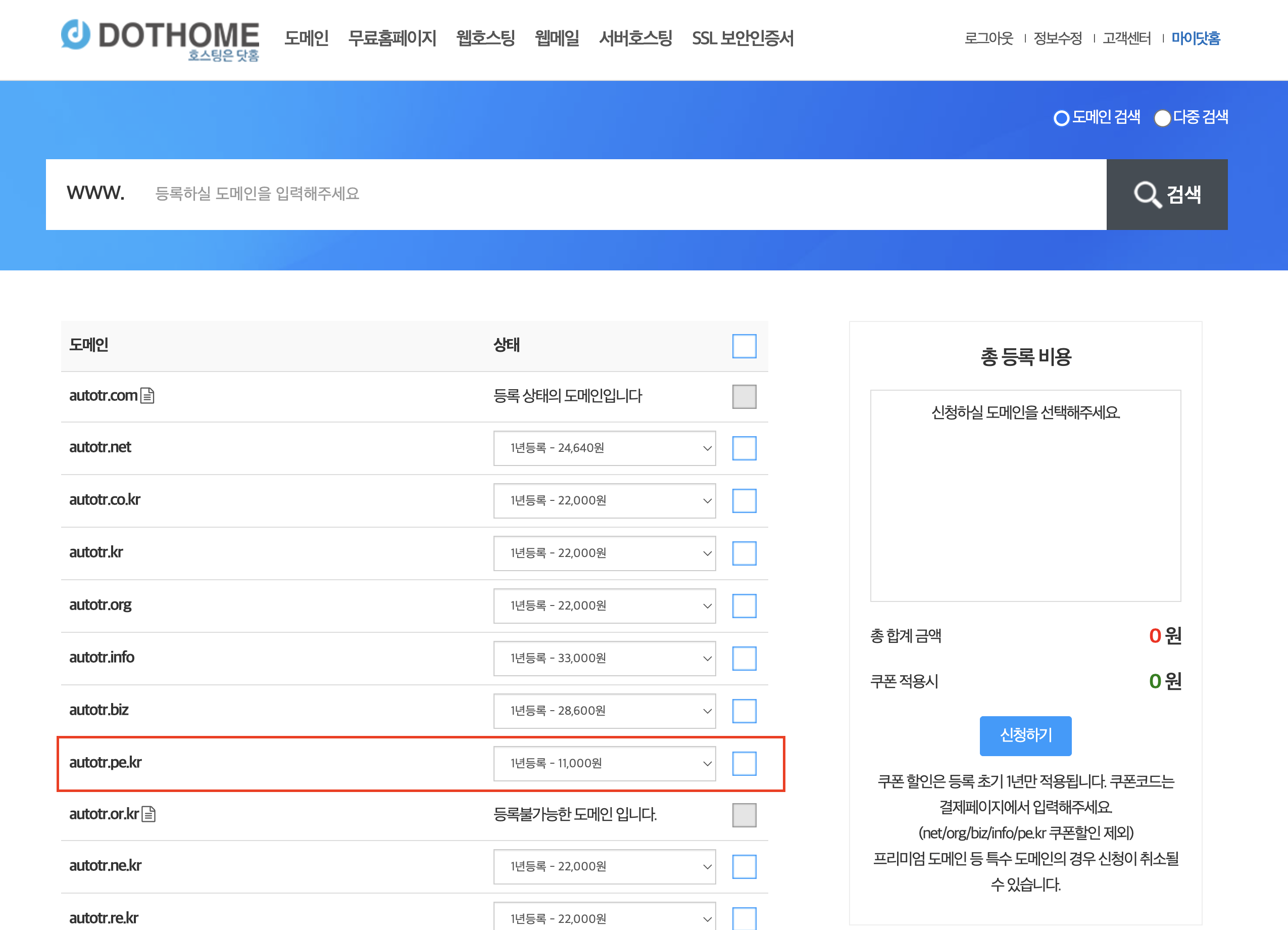 토이프로젝트기도 하고 쉬우니까 닷홈에서 사보기로 하자.