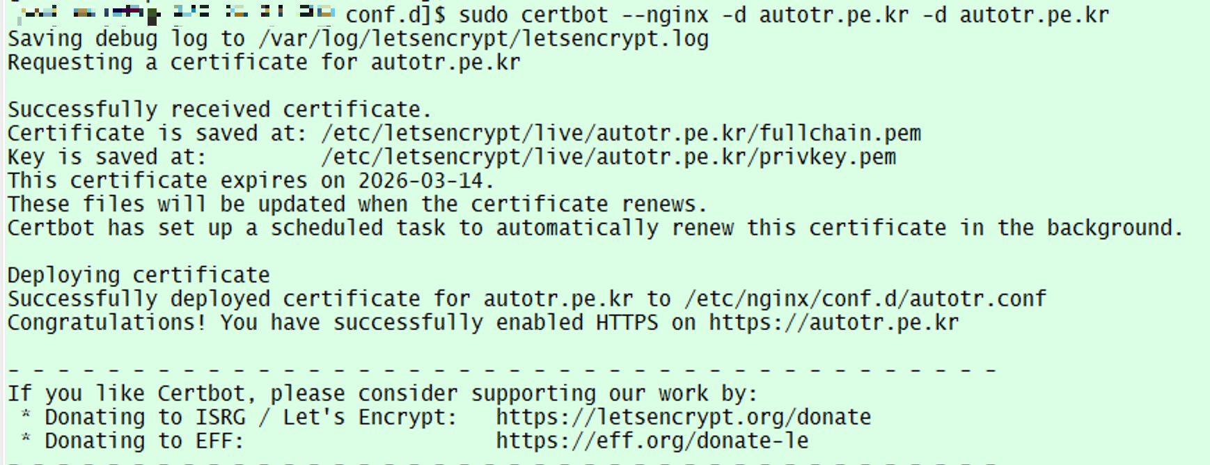 sudo certbot --nginx -d autotr.pe.kr -d autotr.pe.kr